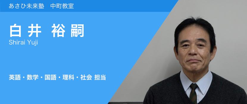 元は工学部建築工学科で学ぶ建築家志望でしたが小学生相手の水泳指導員のバイトを契機に教員志望へ。文学部教育学科を経て小学校教師に。その後塾業界に入り、あさひ未来塾では9年目を迎えます。指導歴32年のもういい年のおっさんですが旺盛な好奇心は衰えず様々なことに関心を持っています。今気になるのはAI。TVのアニメも大好きで最近では「亜人」「Monster」「迷家」などが気に入っています。文学の才能は小説からアニメに移行しているとは林修の弁ですが同感です。日本の誇るべき文化の一つになり得ています。今後生み出される作品に大いに期待しています。授業の後に生徒達とアニメについて語り合うのも楽しいひとときです。